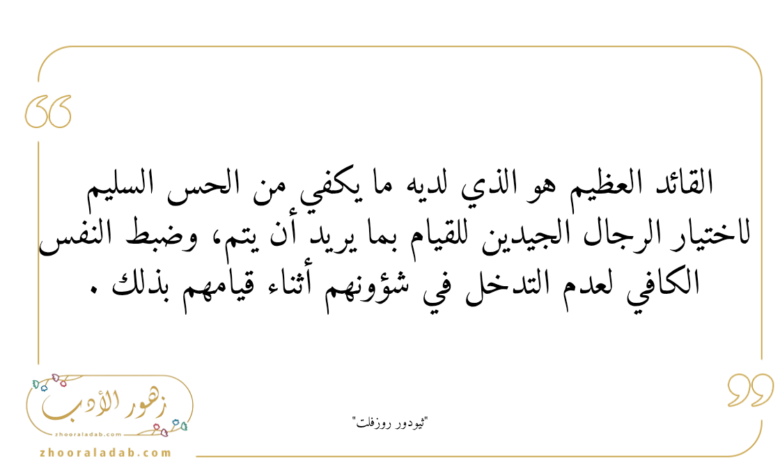 القائد العظيم هو الذي لديه ما يكفي من الحس السليم لاختيار الرجال الجيدين للقيام بما يريد أن يتم، وضبط النفس الكافي لعدم التدخل في شؤونهم أثناء قيامهم بذلك