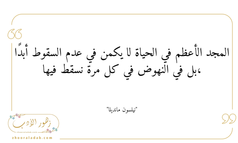 المجد الأعظم في الحياة لا يكمن في عدم السقوط أبدًا، بل في النهوض في كل مرة نسقط فيها