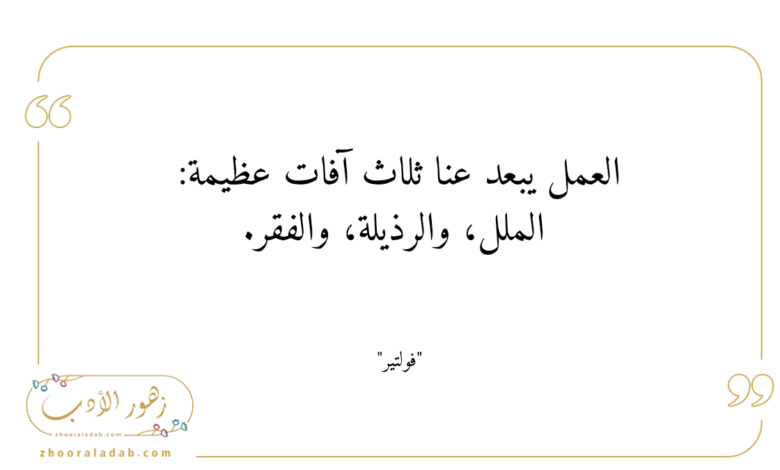 العمل يبعد عنا ثلاث آفات عظيمة: الملل، والرذيلة، والفقر