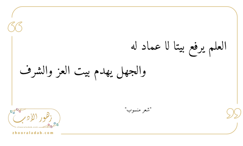 العِلمُ يرفَعُ بيتاً لا عِمادَ لهُ… والجهلُ يهدمُ بيتَ العزِّ والشرفِ